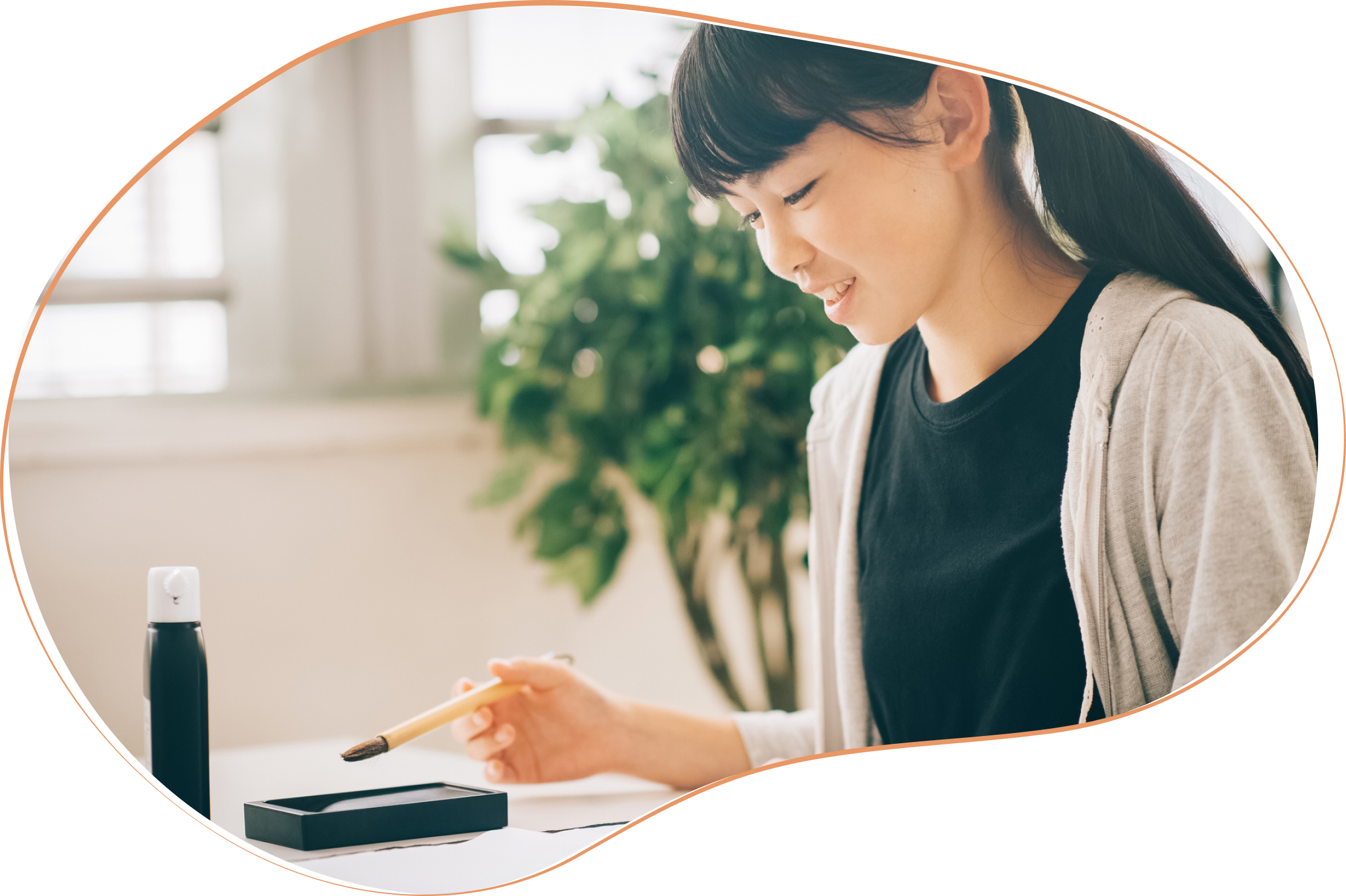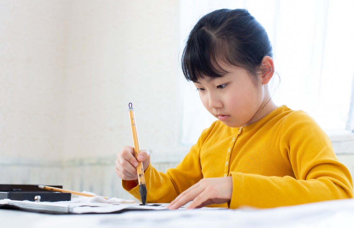 「指導内容」欄にあるとおり、文字を美しく書くことだけでなく、言葉に親しむ、国語力を養成する観点から、辞書を用い漢字の成り立ちを学び、季節や文字に親しむよう指導を行っております。中学生からは、漢字・かなともに古典を学びます。