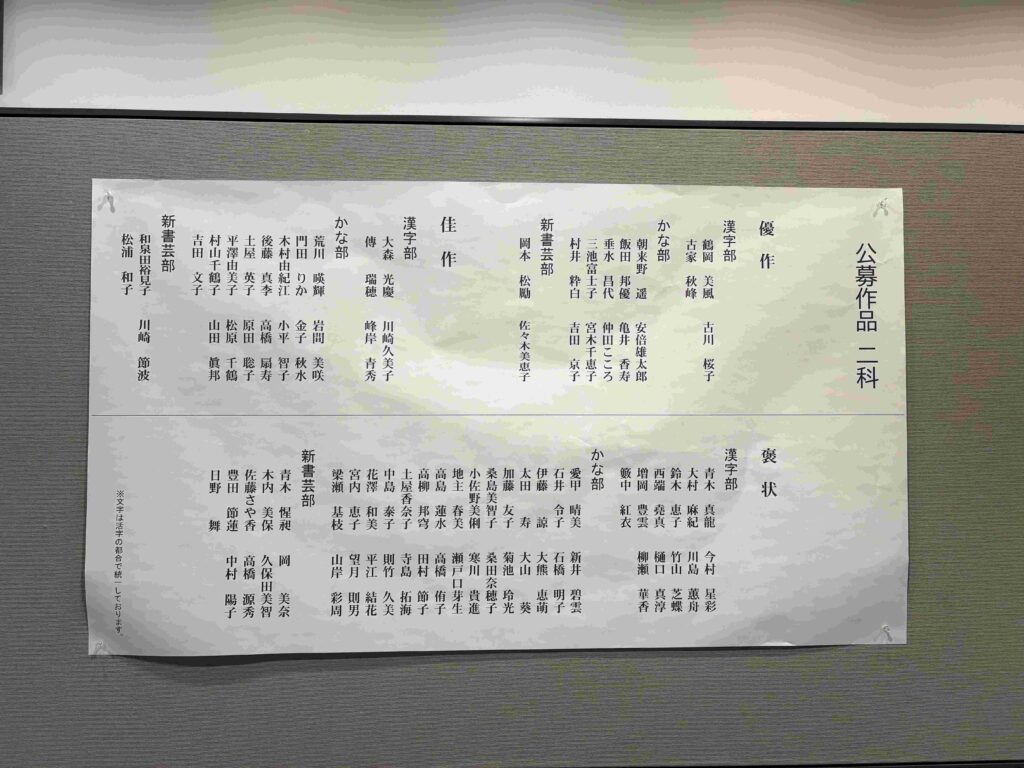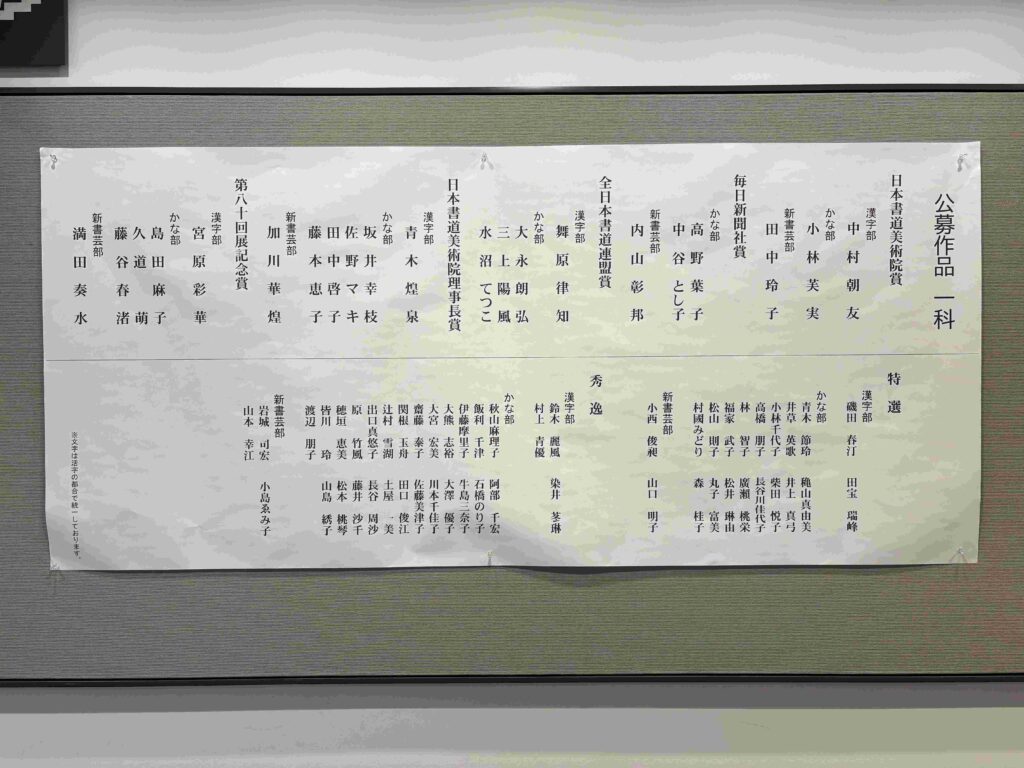 今年も全員が入選したうえ、入賞者も多数輩出でき、皆様の日ごろの鍛錬の成果が見事に結実したと思っております。あわせて、同時開催の教育部展や全国競書大会も入賞者多数で、優秀な成績を収めることができました。